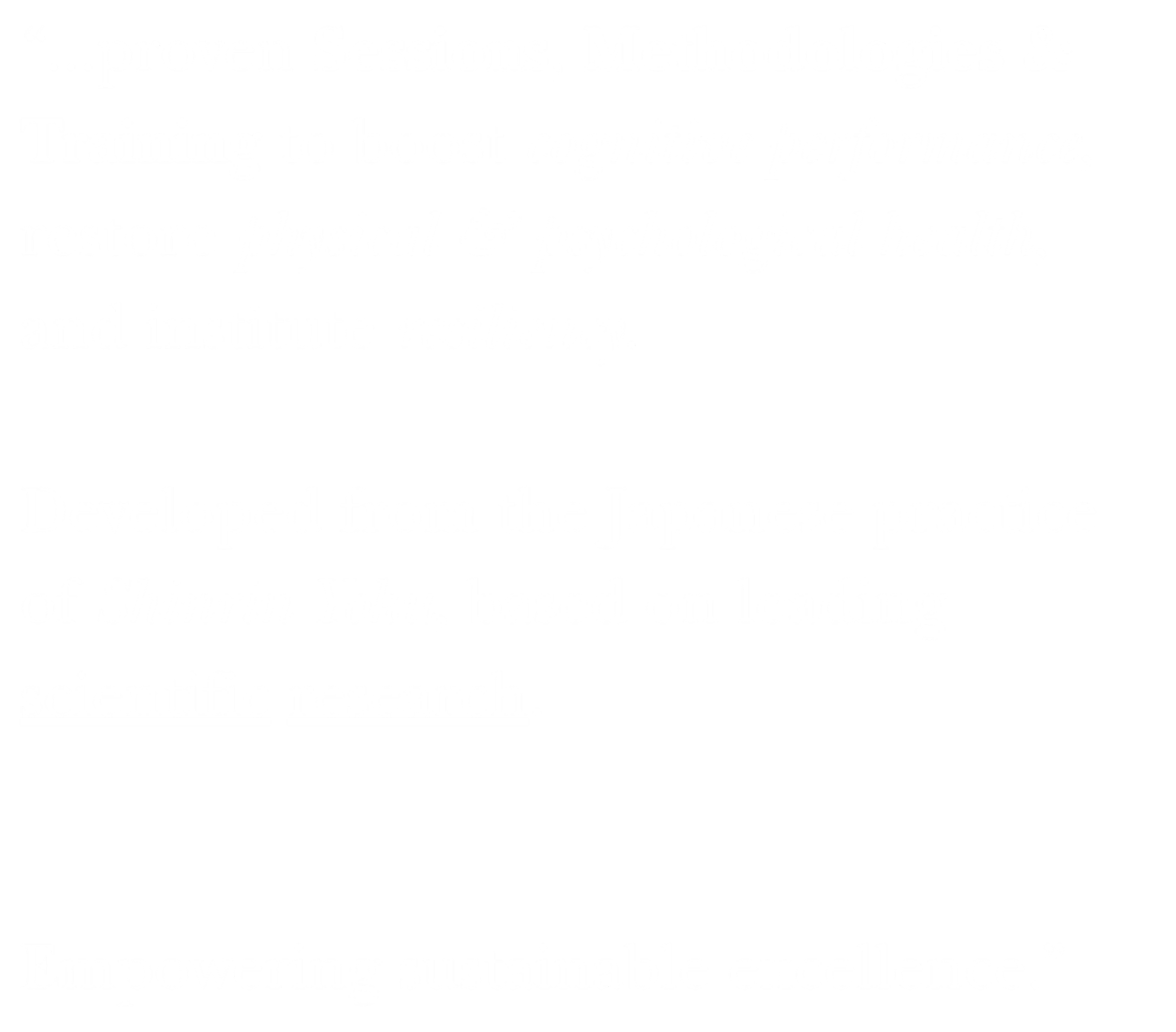 Our services are informed by the Japanese practice of Shinrin Yoku (Forest Therapy) and incorporate leading peer-reviewed scientific research in psychology, biology and health.